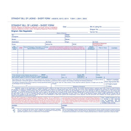 Ensure accurate shipping documentation with the Adams Bill of Lading Short Form. Designed for recording shipments of up to ten articles, this convenient three-part carbonless form provides clear copies for sender, carrier, and receiver.