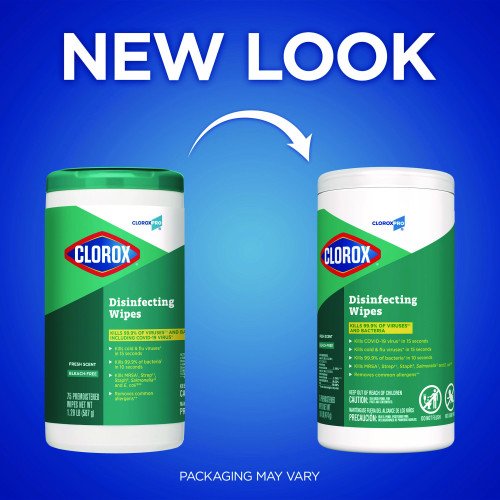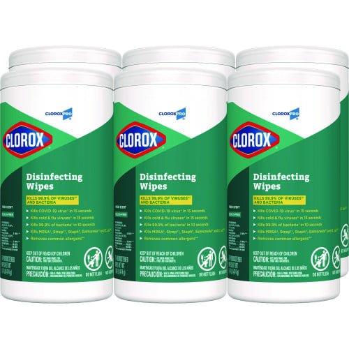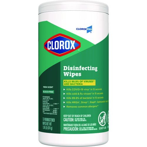 Keep your space safe and spotless with Clorox Disinfecting Wipes, 1-Ply, Fresh Scent, 7 x 8, White, 75/Canister, 6 Canisters/Carton (15949CT).