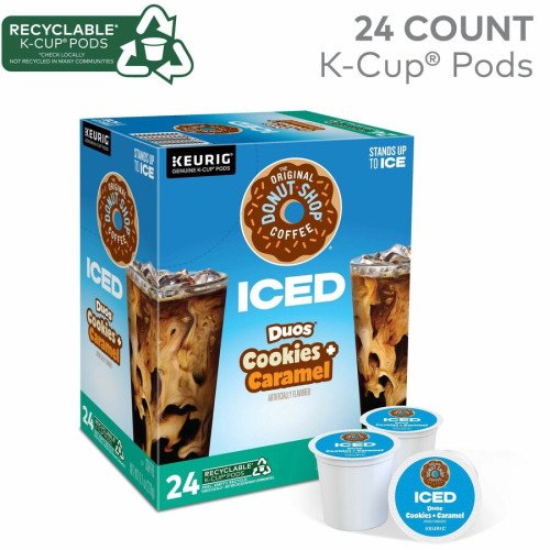 Treat yourself to a dessert-inspired iced coffee with The Original Donut Shop® K-Cup Iced Duos Cookies and Caramel Coffee, 24/Box (9881).