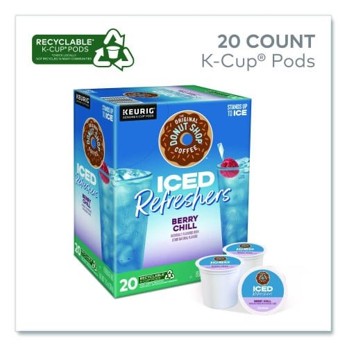 Cool off with The Original Donut Shop ICED Refreshers K-Cup Pods, Berry Chill, 20/Box, 4 Boxes/Carton (0631CT).