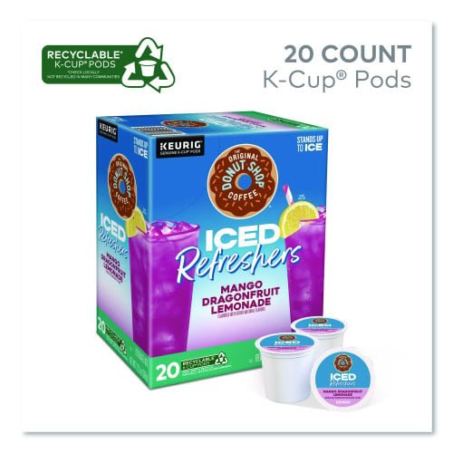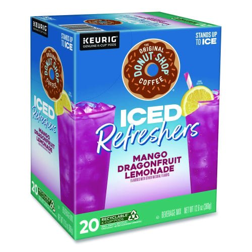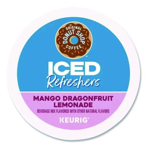 Enjoy a refreshing tropical twist with The Original Donut Shop ICED Refreshers K-Cup Pods, Mango Dragonfruit Lemonade, 20/Box (0532).