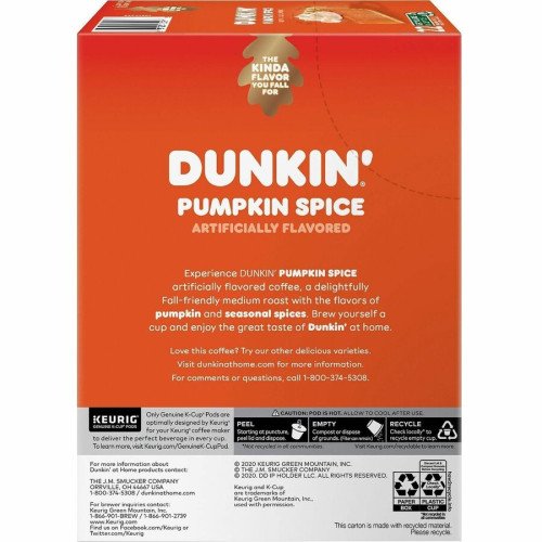 Dunkin Donuts® K-Cup Pumpkin Spice Coffee (7596CT) delivers the cozy taste of fall in every cup.