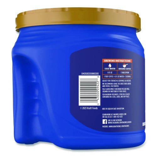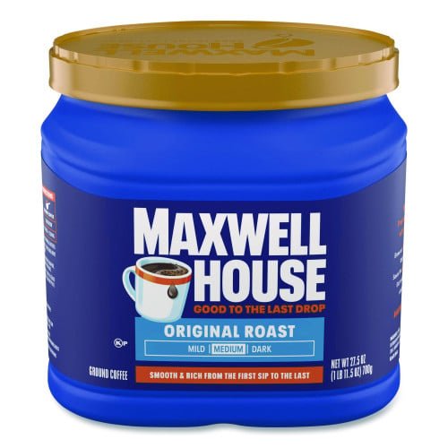 Maxwell House Coffee, Original Roast, 27.5 oz Canister (09422) delivers the rich, smooth, and classic flavor that Maxwell House is known for. This medium roast blend provides a consistently balanced taste that’s “Good to the Last Drop” with every brew. Packaged in a convenient resealable canister, it stays fresh longer and is easy to scoop for everyday use.