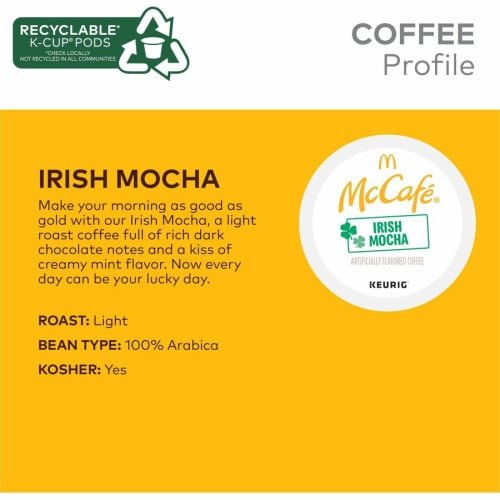 Indulge in a dessert-inspired coffee experience with McCafé Irish Mocha K-Cups, 24/Box, 4 Boxes/Carton (9459CT).