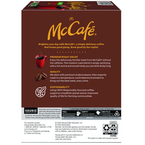 Enjoy the classic McCafé taste without the caffeine with McCafe Premium Roast Decaf K-Cups, 24/Box (7467).