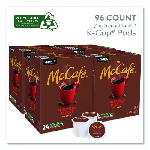 Enjoy the classic McCafé flavor with McCafé Premium Roast K-Cups, 24/Box, 4 Boxes/Carton (7465CT).