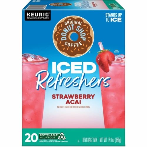 Cool down with The Original Donut Shop® Iced Refreshers Strawberry Acai, 20/Box, 4 Boxes/Carton (0237CT).