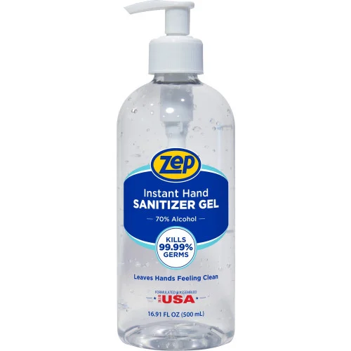 Zep Hand Sanitizer Gel delivers effective germ-killing protection in a convenient pump bottle format. Formulated with an alcohol-based sanitizing solution, it helps reduce common germs quickly while drying fast and leaving hands feeling clean without sticky residue. The clear gel formula features a light clean scent for a refreshing hand hygiene experience. Packaged in a 16.91 fl oz pump dispenser, it is ideal for offices, healthcare settings, retail counters, schools, and home use where reliable hand sanitation is essential.